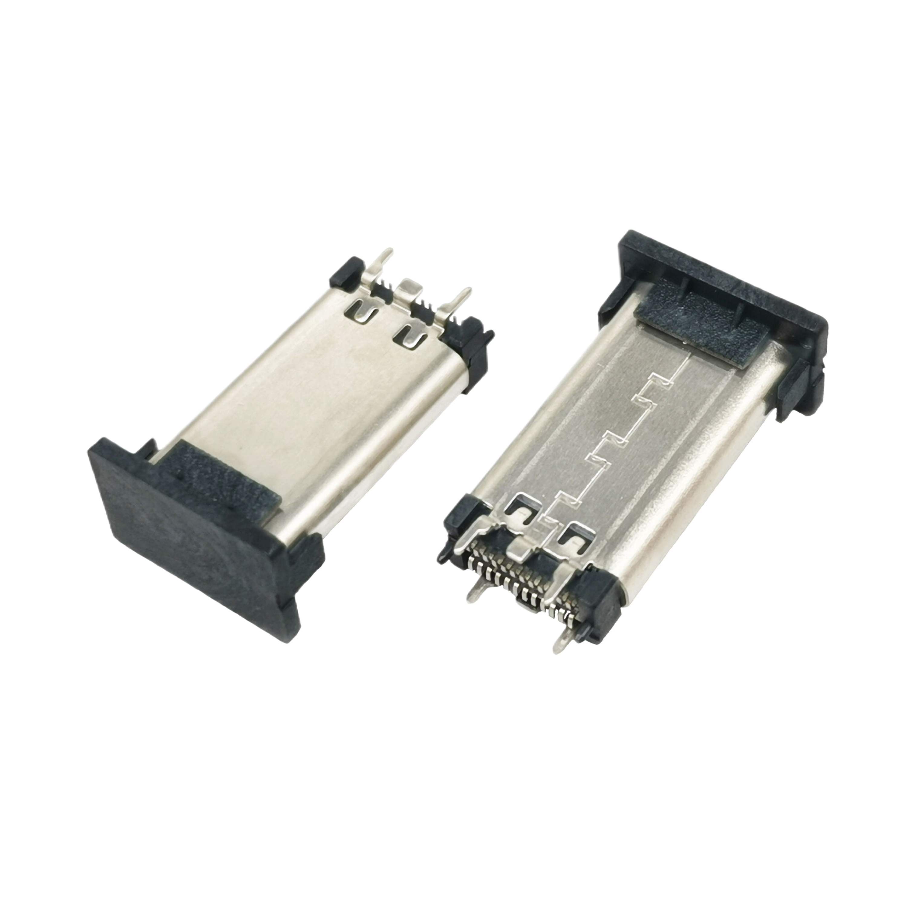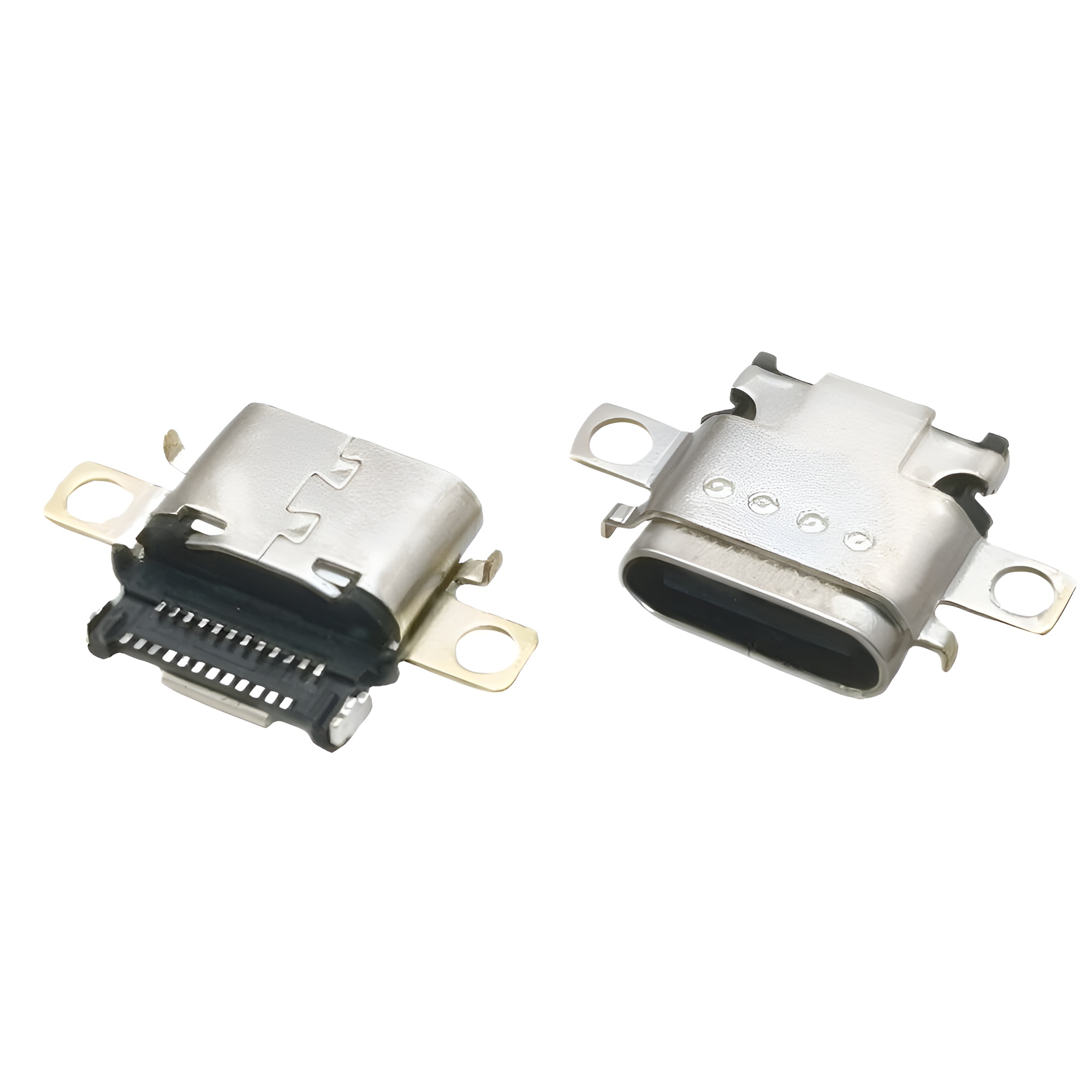 TYPE C 單排24P母座 沉板式免焊型連接器 帶雙耳螺絲孔
